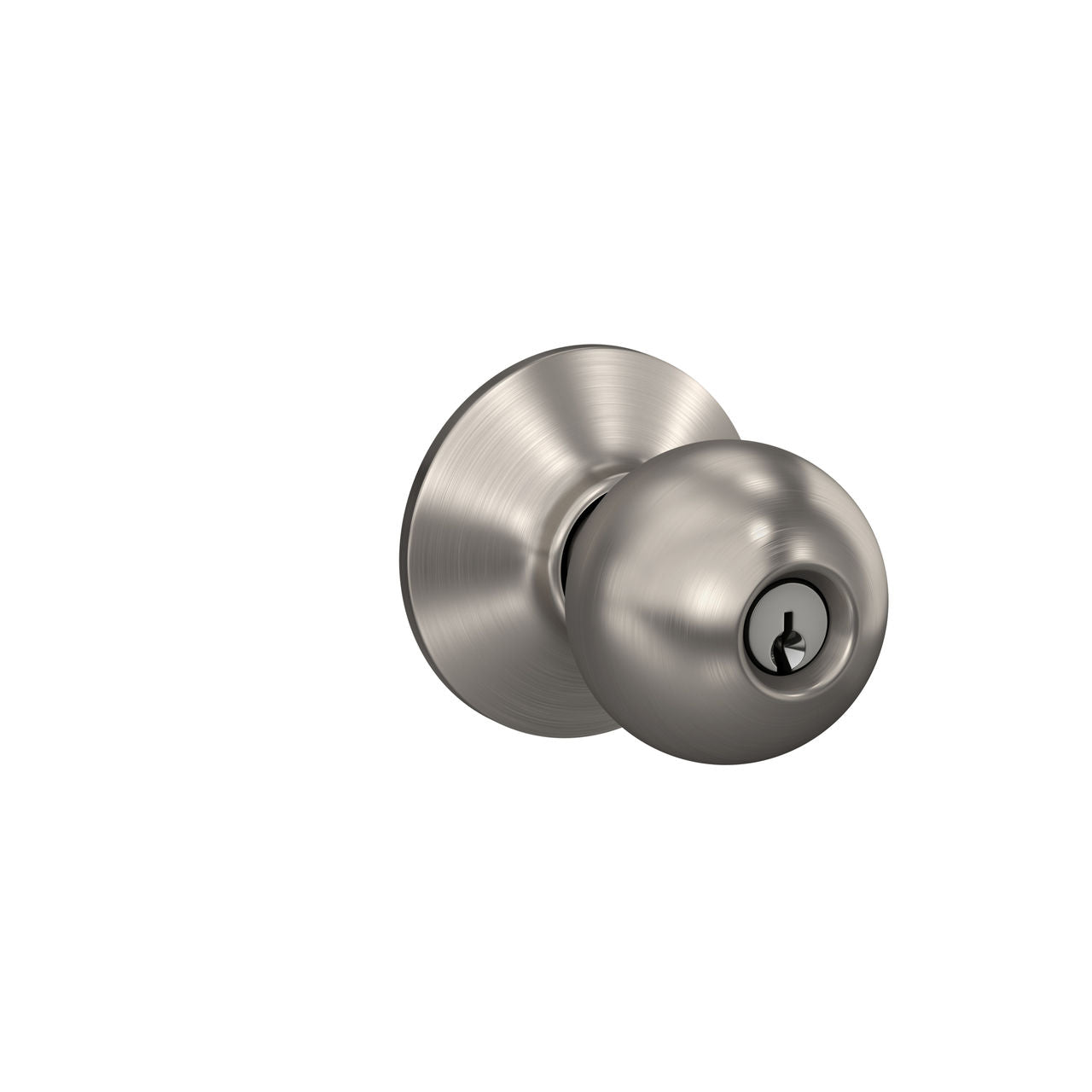 The Schlage Orbit keyed entry knob delivers reliable security with Grade 2 performance in a sleek satin chrome finish. Designed for standard residential doors, it fits 1-3/8 in. to 1-3/4 in. thicknesses and includes a universal adjustable backset for easy install with just a screwdriver.