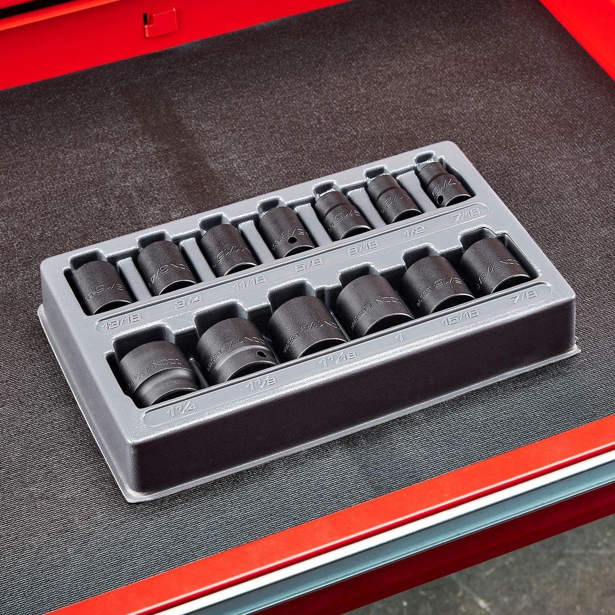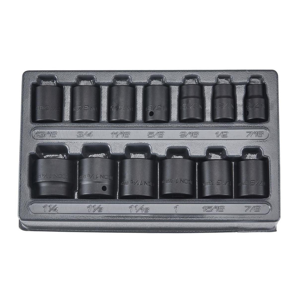 Icon™ Professional Impact Sockets are designed to stand up to professional shop use. We use a premium heat treated chrome moly steel, with a durable black phosphate finish that offers superior strength and corrosion resistance. All Icon™ sockets have a 6 point design for maximum torque, chamfered socket openings for quick fastener engagement, and a thin wall design for easy access on difficult fasteners. All impact sockets feature a semi-shallow hex depth to keep the fastener near the end of the socket for more efficient work. We've also added easy to read size markings, and included a premium storage tray to help keep your tools organized. Like the rest of the Icon™ hand tools, these sockets are backed by a hassle-free, manufacturer’s lifetime warranty.