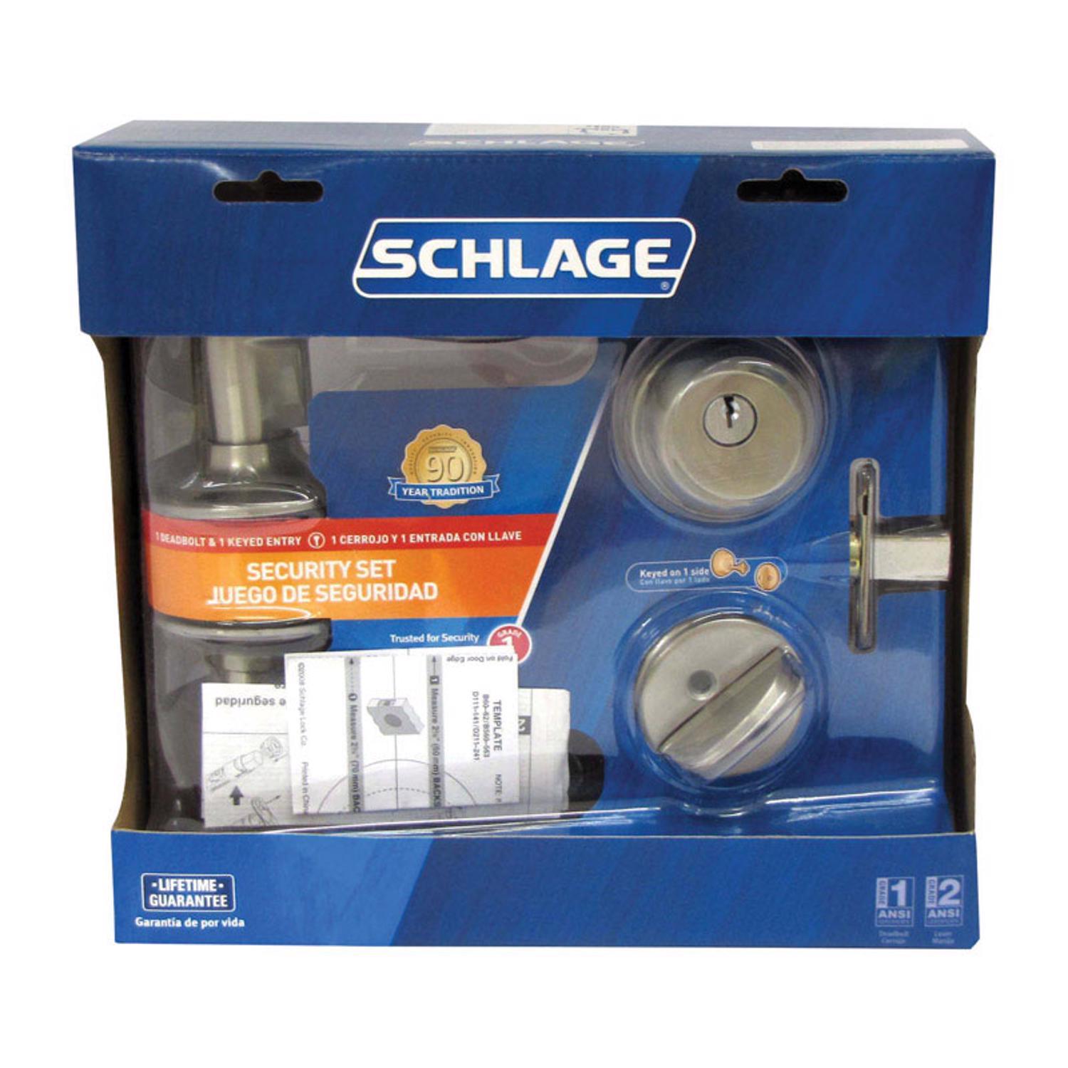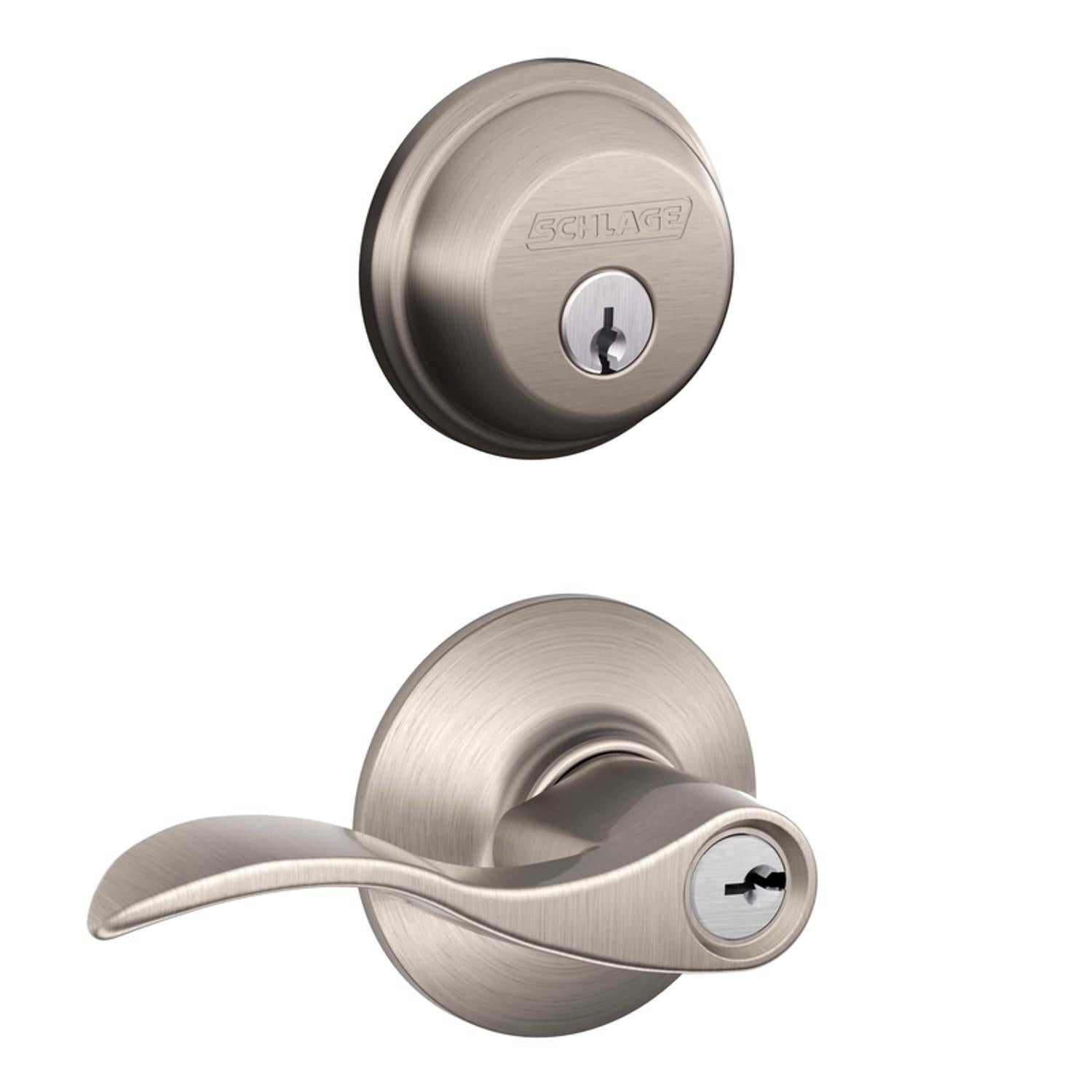 This Schlage set pairs the elegant Accent lever with a single-cylinder deadbolt in a durable satin nickel finish, ideal for exterior doors. Built to ANSI Grade 2 standards, it offers reliable protection and smooth operation for right- or left-handed doors.