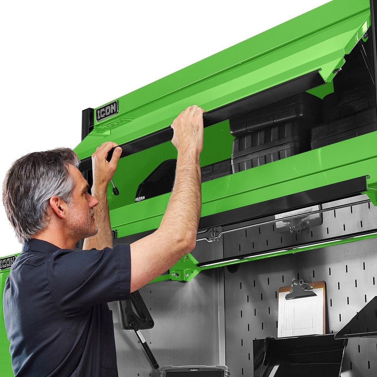 The Icon™ Professional Overhead unit can be added to the work center or top chest for additional open storage space and is ideal for specialty kits and tool cases. All Icon™ storage comes with free door-to-door delivery and a lifetime warranty—plus, a full line of replacement parts is available. It’s the only storage solution you’ll ever need.