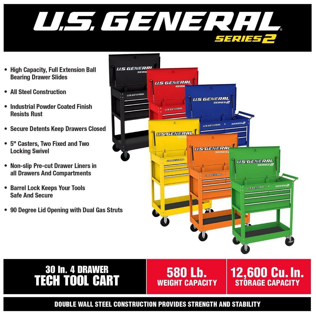 Keep the tools you need for the job organized and easily accessible with this all-steel roller cart. This mobile cart provides 12,600 cu. in. of storage space and handles up to 580 Lb. worth of equipment. Features include four smooth rolling casters for easy maneuverability around your work area and a glossy powder coat finish to prevent rusting.