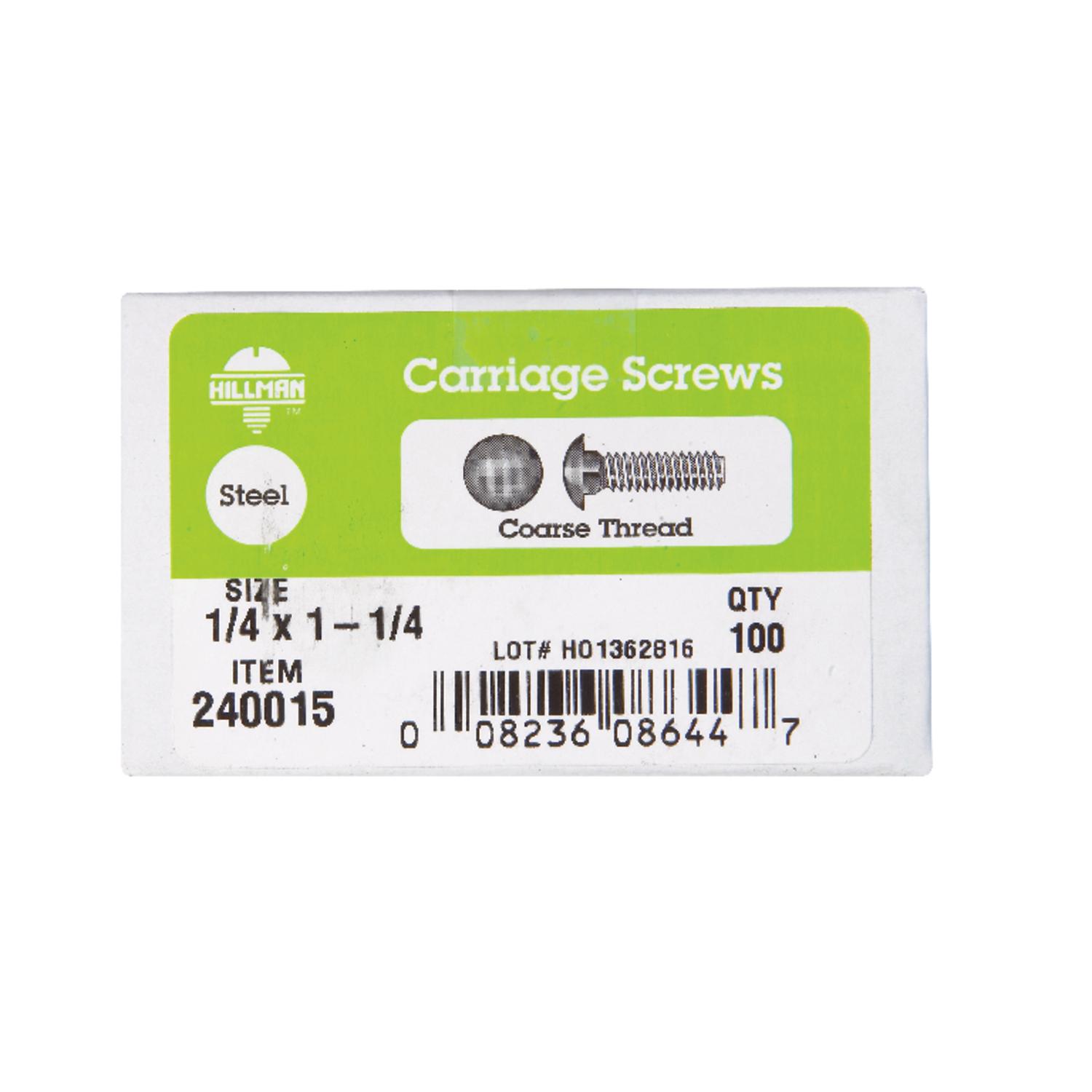 Hillman 1/4 in. x 1-1/4 in. Zinc-Plated Steel Carriage Bolt, Coarse Thread (100-Pack)