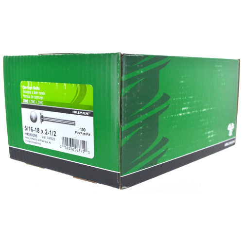 Hillman 5/16 in. x 2-1/2 in. Zinc-Plated Steel Carriage Bolt, 100-Pack