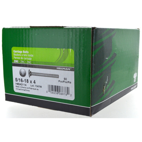Hillman 5/16 in. x 4 in. Zinc-Plated Steel Carriage Bolt, 50-Pack