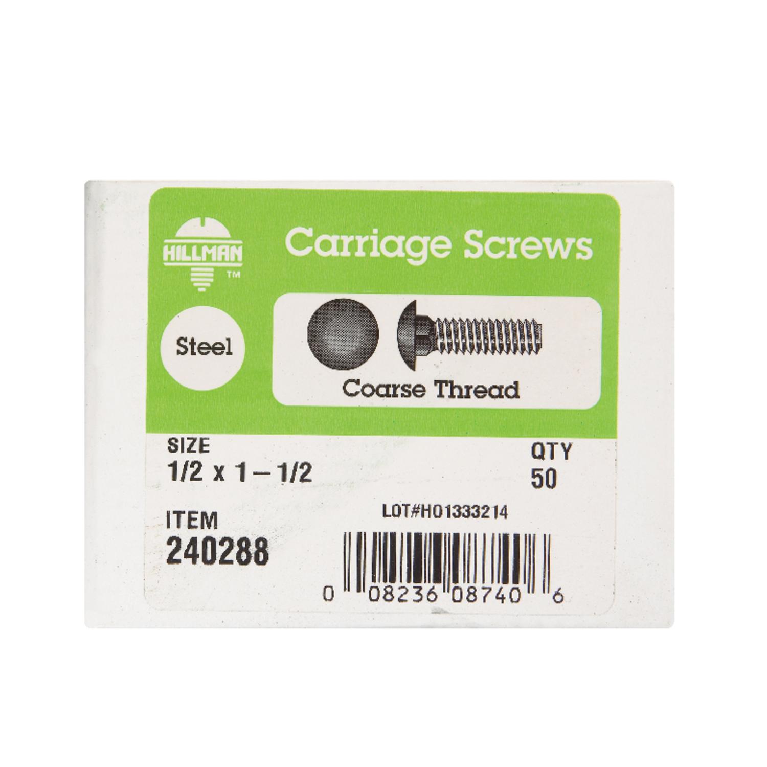 Hillman 1/2 in. x 1-1/2 in. Zinc-Plated Steel Carriage Bolt, Coarse Thread, 50-Pack