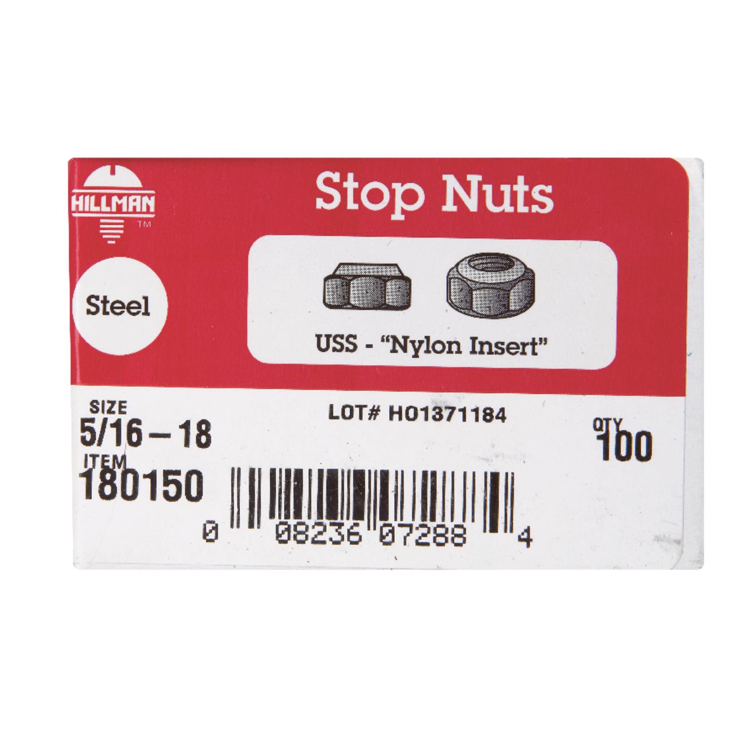 Hillman 5/16 in. Zinc-Plated Steel USS Nylon Lock Nut, 100-Pack