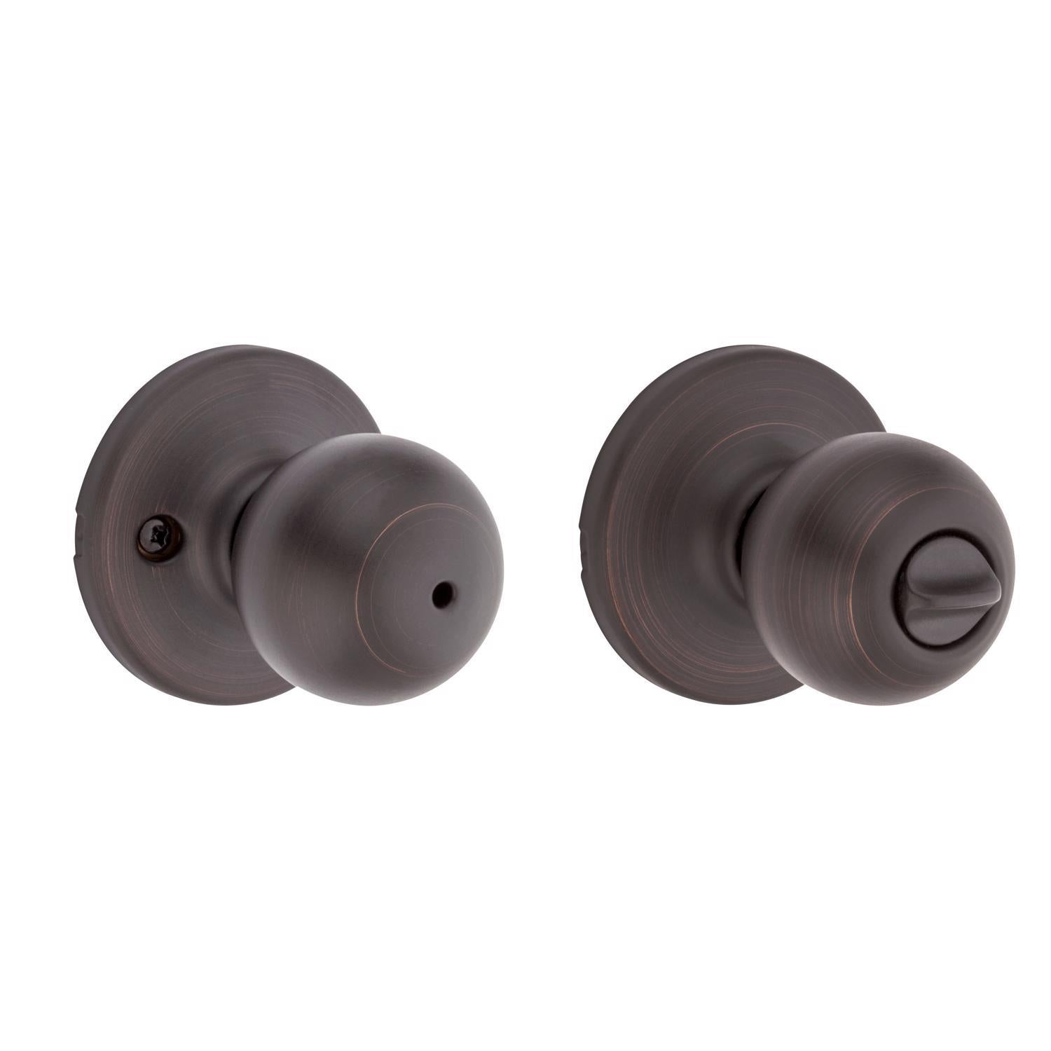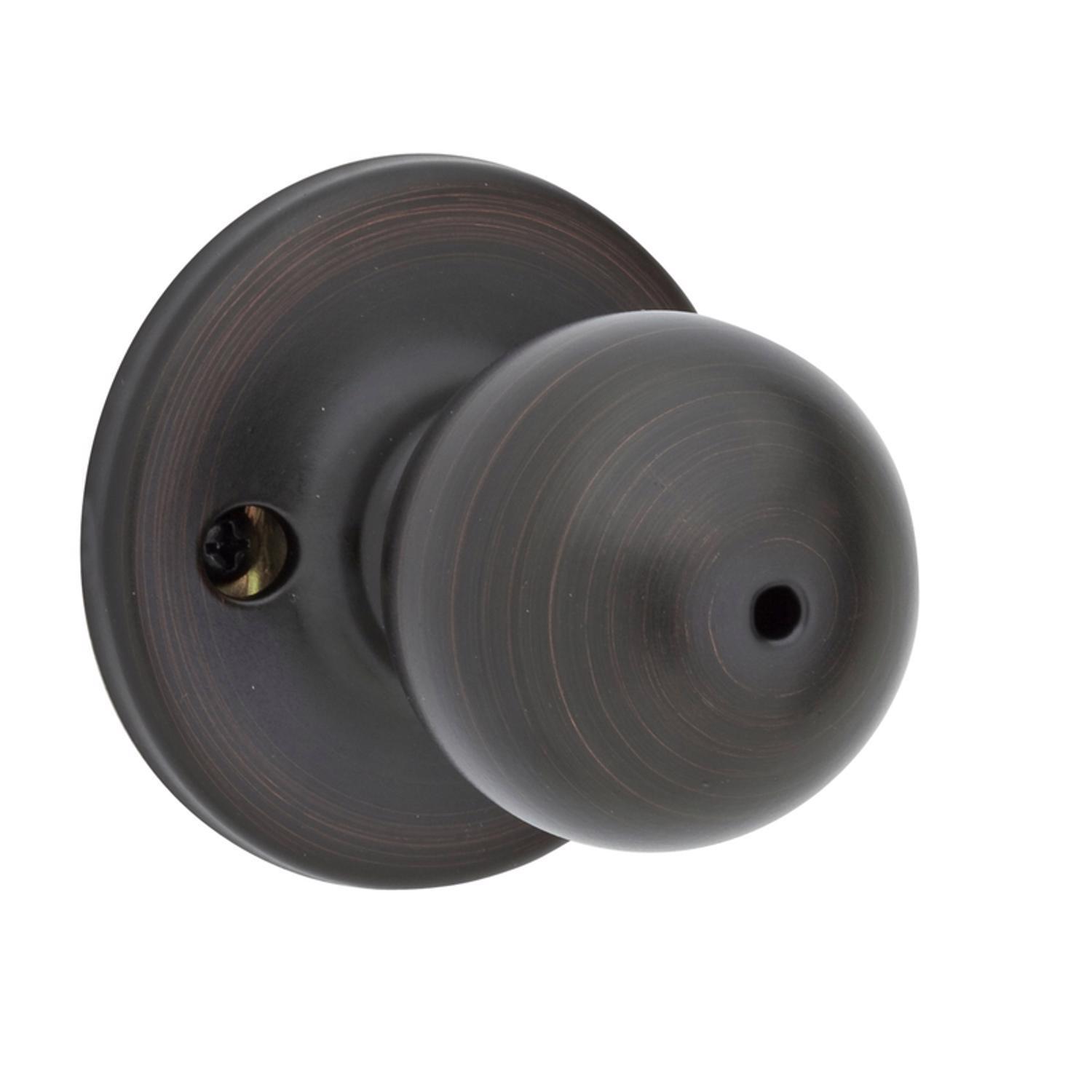 The Kwikset Polo privacy knob delivers classic styling with a rich Venetian Bronze finish for bedrooms and bathrooms. It offers universal handing for right- or left-handed doors and installs quickly with a screwdriver, providing reliable privacy with a simple turn-button lock.