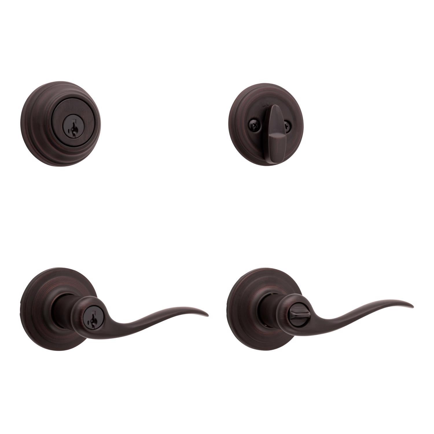 Kwikset SmartKey Tustin Venetian Bronze Entry Lever and Deadbolt Set, ANSI/BHMA Grade 2, KW1, 1-3/4 in.