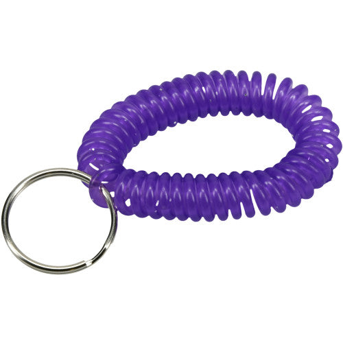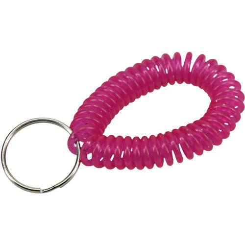 Flexible plastic wrist coil key chain keeps keys or badges securely at hand. Assorted colors with a durable split ring make it ideal for everyday carry at home, work, or the gym.
