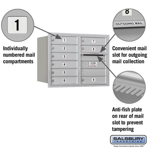 6 Door High Recessed Mounted 4C Horizontal Mailbox with 9 Doors in Aluminum - Rear Loading