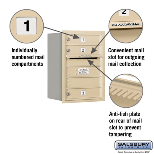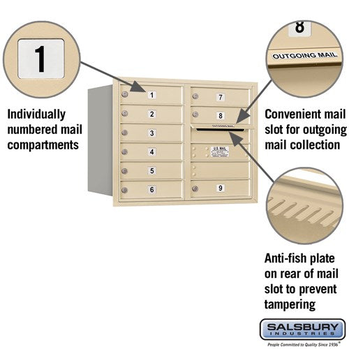 6 Door High Recessed Mounted 4C Horizontal Mailbox with USPS Access, Rear Loading, Sandstone