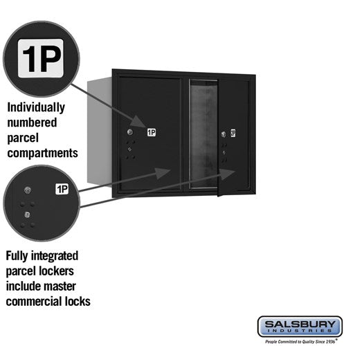 6-Door High Recessed Mounted Parcel Locker with 2 Parcel Lockers - Black - Front Loading