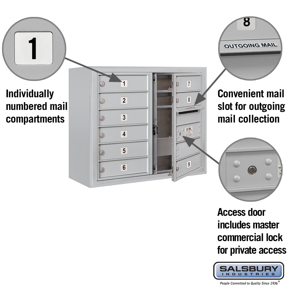 6 Door High Surface Mounted 4C Horizontal Mailbox with 9 Doors in Aluminum for Private Access