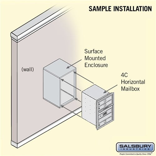 Q: What is included in the package? A: The package includes the 4C horizontal mailbox unit, a matching surface-mounted enclosure, and commercial master locks.