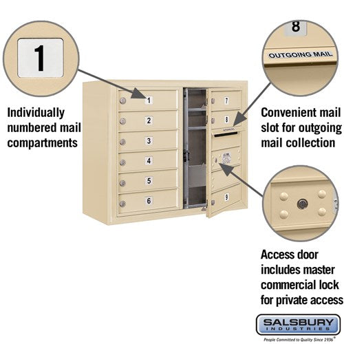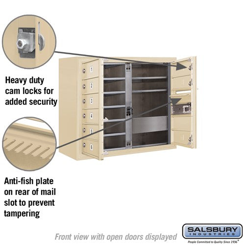 6 Door High Surface Mounted 4C Horizontal Mailbox with Private Access in Sandstone
