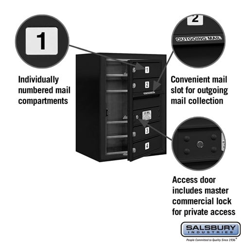 Included Components 4C horizontal mailbox unit, surface mounted enclosure, commercial master lock(s)