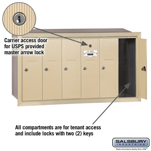 6-Door Sandstone Vertical Mailbox - Recessed Mounted - USPS Approved