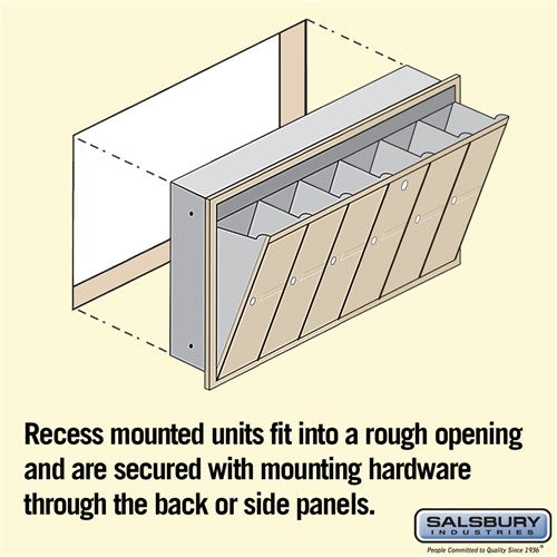 A: The mailbox is recessed mounted, fitting into a rough opening and secured with mounting hardware.