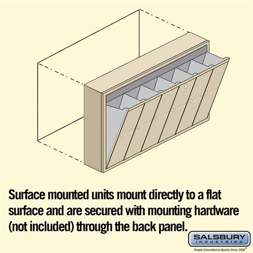 A: The overall dimensions are 35.25" W x 19" H x 7.5" D, with individual compartment sizes of 5-1/2" W x 16-1/4" H x 6-3/4" D.