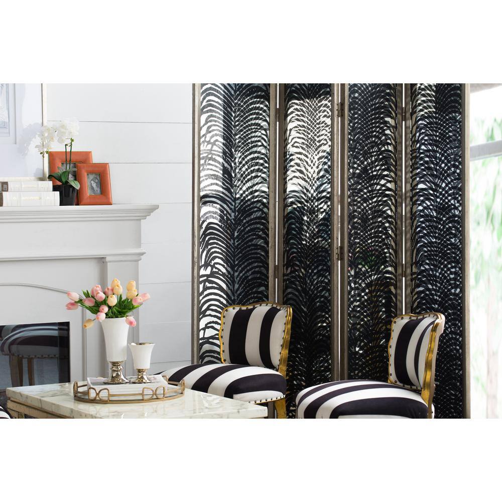 The 6 ft. Black Wood Folding Privacy Screen transforms open spaces into private, intimate settings with its striking design and durable construction. Perfect for both residential and commercial spaces, it offers easy maneuverability and storage thanks to its folding capability and robust metal frame.