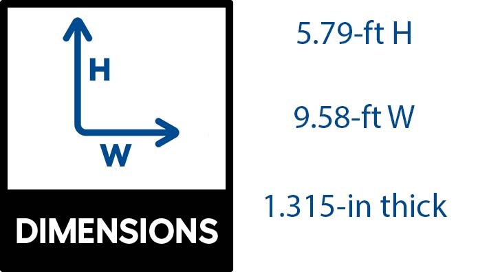 - Installation: Made to fit a 10-ft opening, with specific dimensions for optimal hardware fitting.
