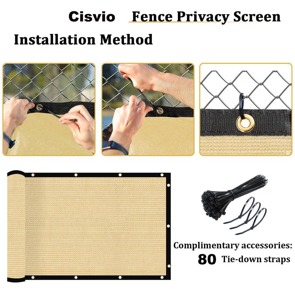 Enhance your outdoor privacy with the Cisvio 6 ft. x 50 ft. Privacy Mesh Fence Screen. Made from durable, UV-blocking HDPE material, this screen provides unparalleled privacy while allowing air flow, perfect for gardens, patios, and balconies. Easy to install with lasting strength, it withstands the elements while maintaining a clean look.