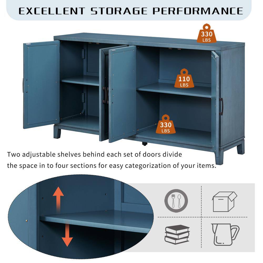 Transform your home with the Cesicia Navy Retro Acacia Wood Kitchen Sideboard. Crafted with elegance, this ready-to-assemble unit offers a spacious storage solution with adjustable shelves, sturdy acacia wood frames, and a stylish distressed finish. Its vintage charm is ideal for creating a cohesive farmhouse aesthetic.