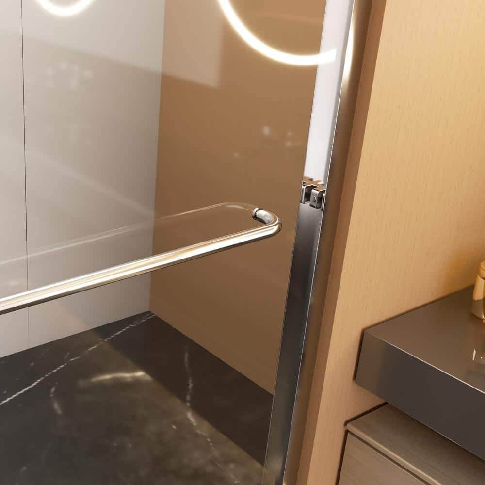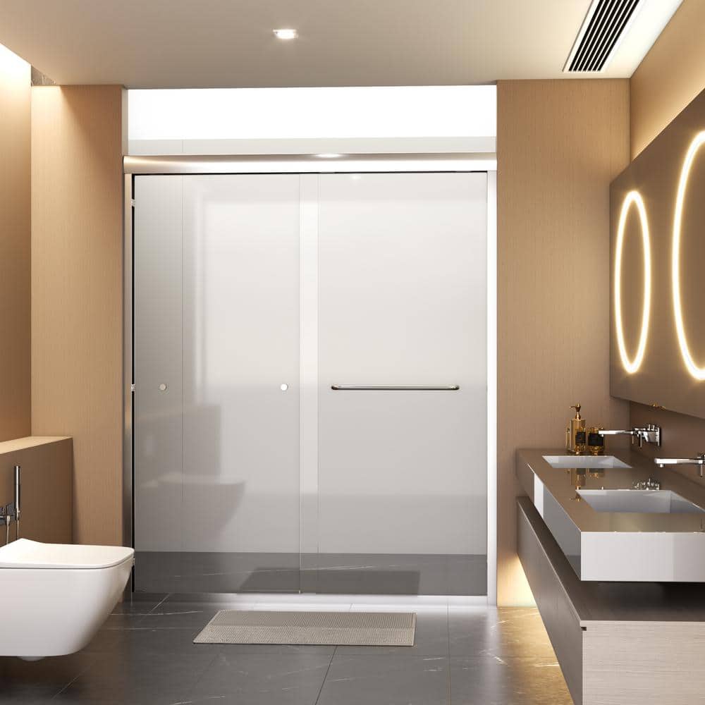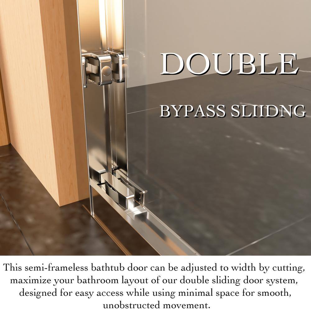 Enhance your bathroom with this semi-frameless double sliding shower door, expertly designed with safety and style in mind. Featuring explosion-proof tempered glass and a sleek chrome finish, this door ensures durability and elegance, providing an outstanding shower experience while maintaining a sophisticated look.