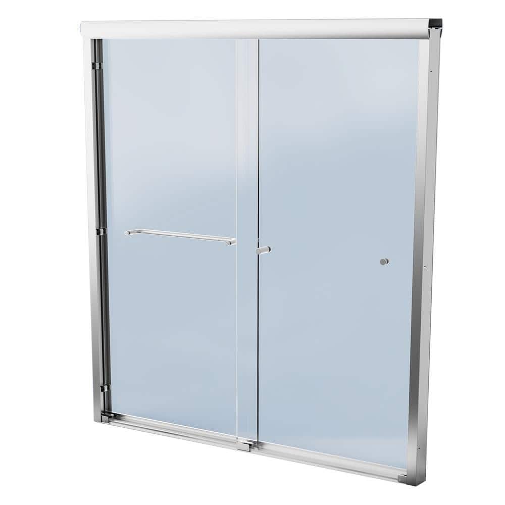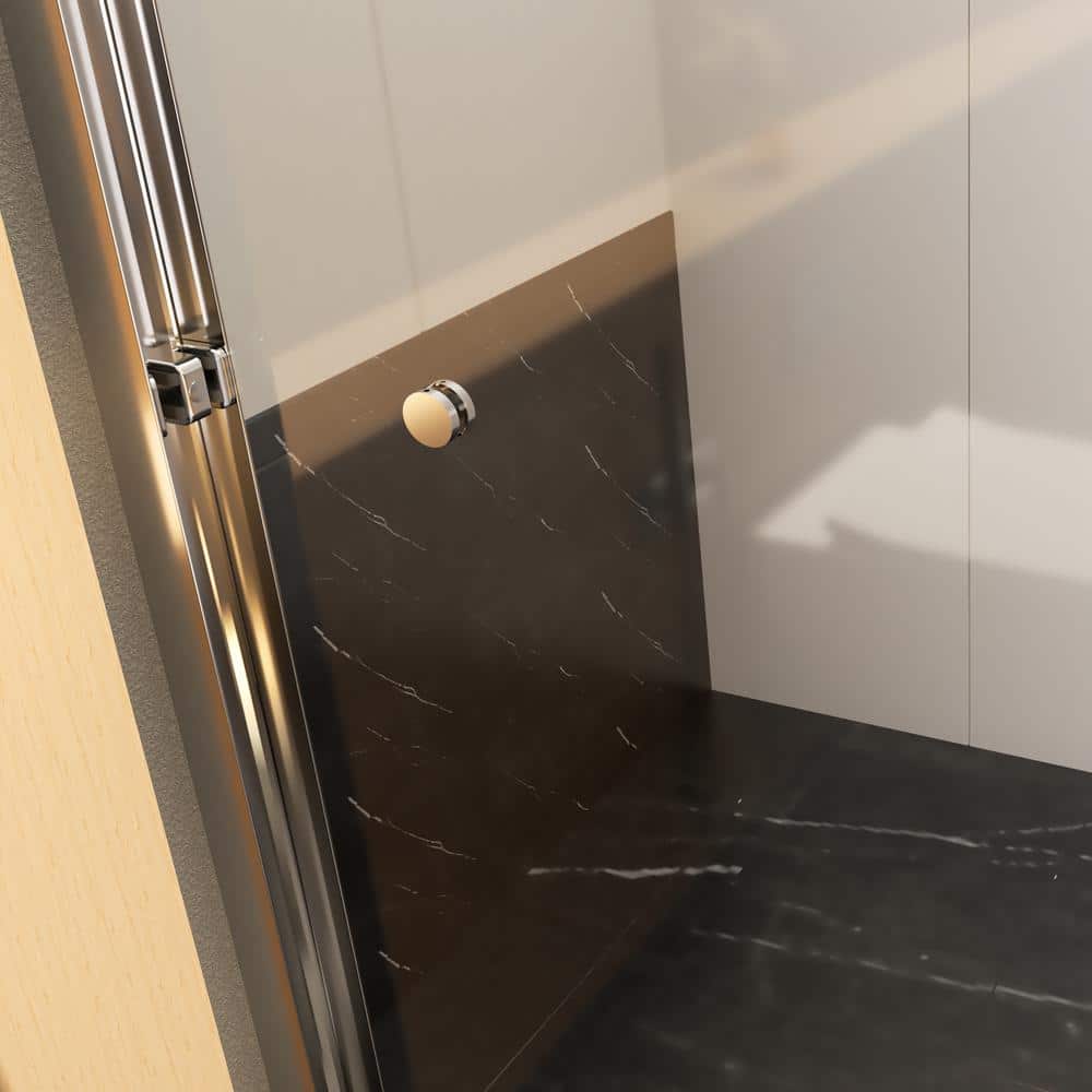Q: Is the shower door adjustable? A: Yes, it can adjust to fit openings between 56 to 60 inches, making it highly adaptable to different bathroom sizes.