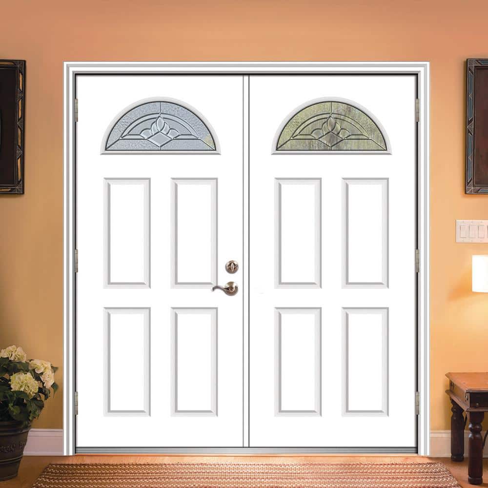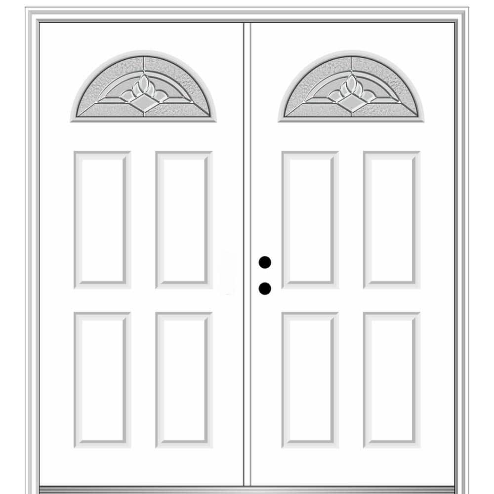 60 in. x 80 in. Grace Right-Hand Inswing Fan-Lite Decorative Primed Fiberglass Prehung Front Door on 4-9/16 in. Frame