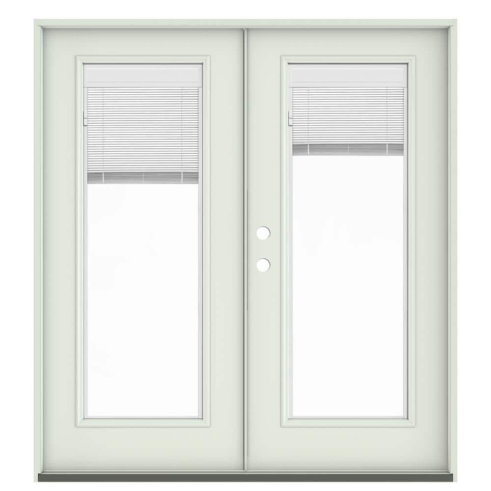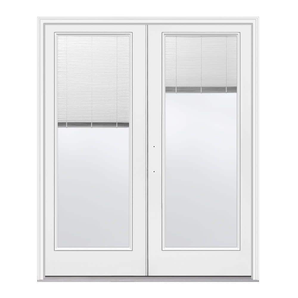 60 in. x 80 in. Right-Hand/Outswing Low-E 1 Lite Primed Fiberglass Double Prehung Patio Door with Internal Blinds