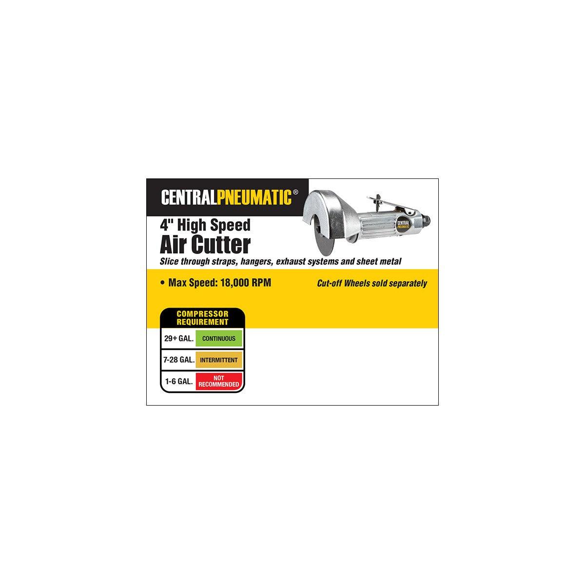 This high speed cut off tool allows you to slice easily through straps, hangers, exhaust systems and sheet metal! A safety trigger prevents accidental start-up and the cut off tool features regulated flow and rear exhaust. This variable speed cut off tool makes quick work of cutting applications in the shop, garage or auto body shop.