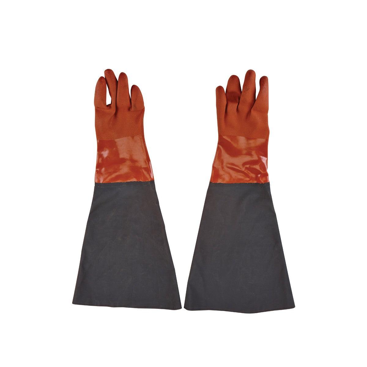 Heavy-duty replacement gloves for abrasive blasting cabinets with 7 in. glove ports. Built for durability and protection against media, keeping hands safe and the cabinet sealed during blasting tasks.