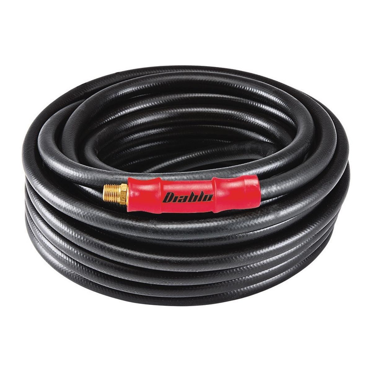 This air hose is constructed of durable synthetic rubber for superior performance and long service life. Designed for work in all conditions this professional rubber air hose is oil, gas and ozone resistant. Brass fittings are corrosion resistant.