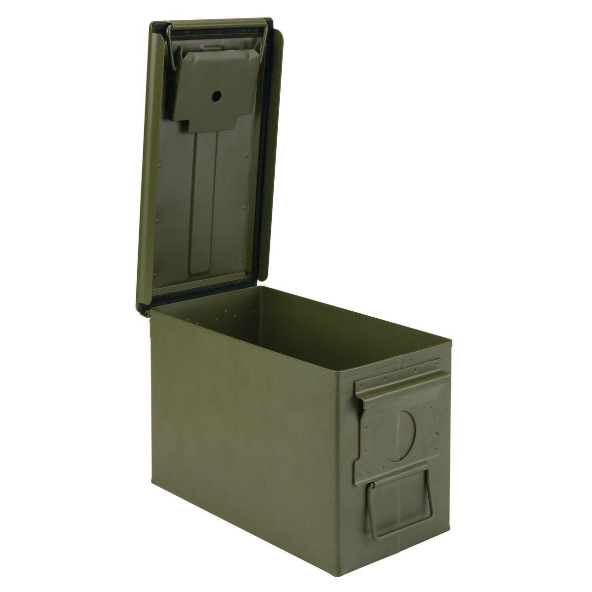This weatherproof steel ammo can is designed to hold gigantic .50 caliber Browning Machine Gun (BMG) rounds - giving you plenty of storage space for standard ammunition, tools or electronic gear. This sturdy field box is built entirely from steel with a weatherproof gasket.