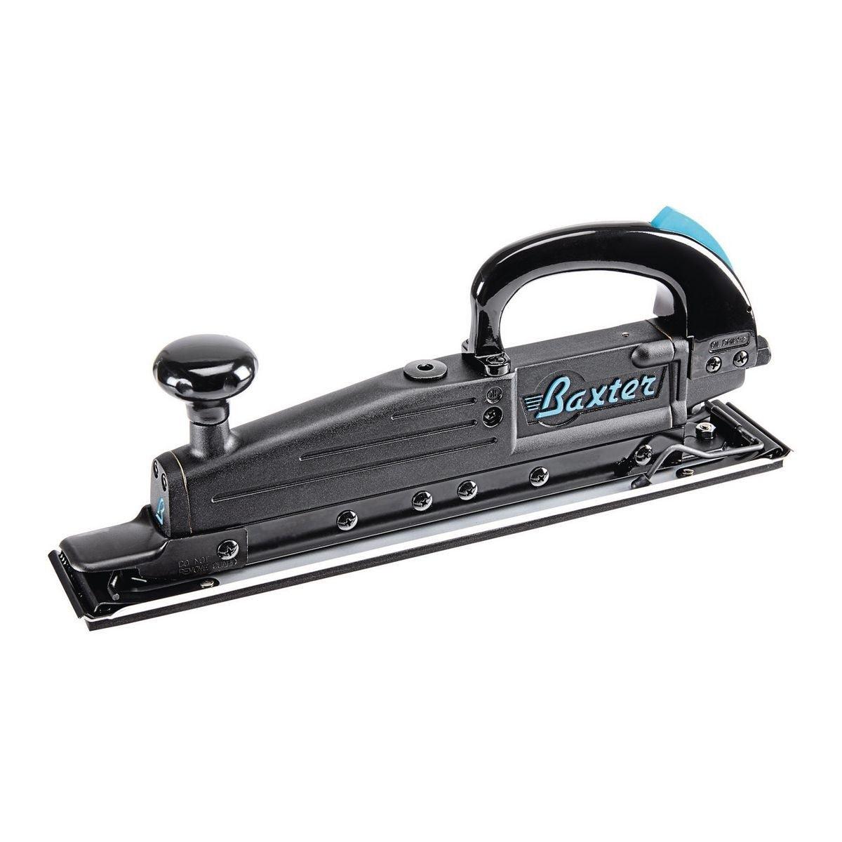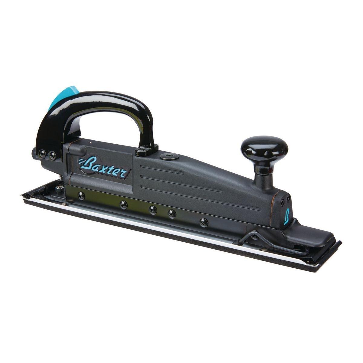 The Baxter® Professional Straight Line Sander won't bog down or stall during the heaviest use. Forward and reverse dual cylinders power through the stroke for super smooth sanding action. Cover large areas quickly with a huge 1 inch stroke. Rugged construction designed for daily use. High-tension spring clamps keep paper locked in place. Fast and easy paper changes.