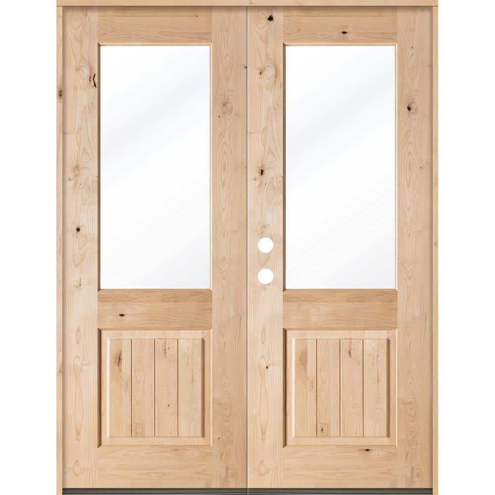 Rustic Knotty Alder Half-Lite Double Prehung Front Door, 64x96