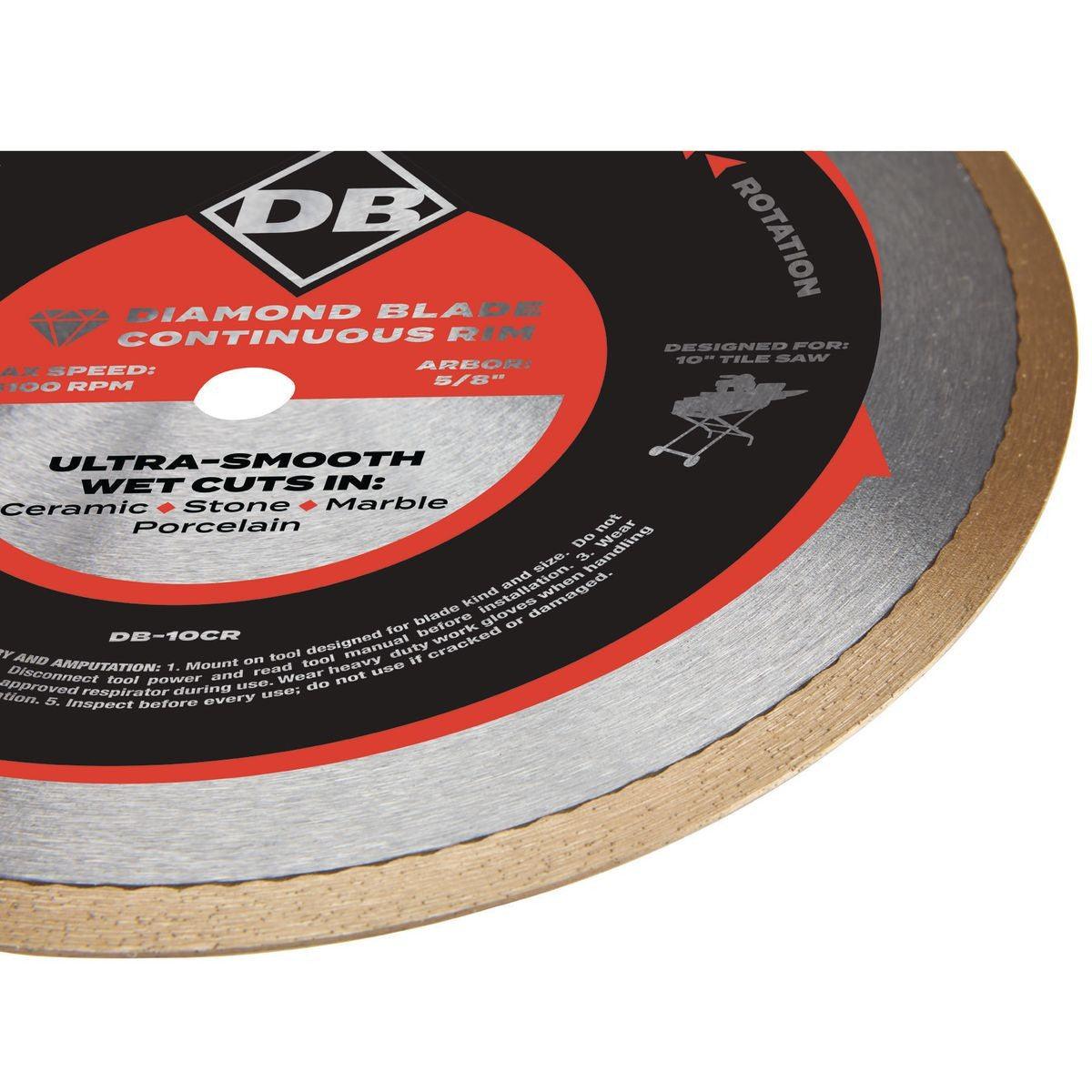 This diamond wet cut blade has a continuous rim for smooth, chip-free cutting. The steel saw blade has a bonded diamond edge designed for speeds up to 6100 RPM.