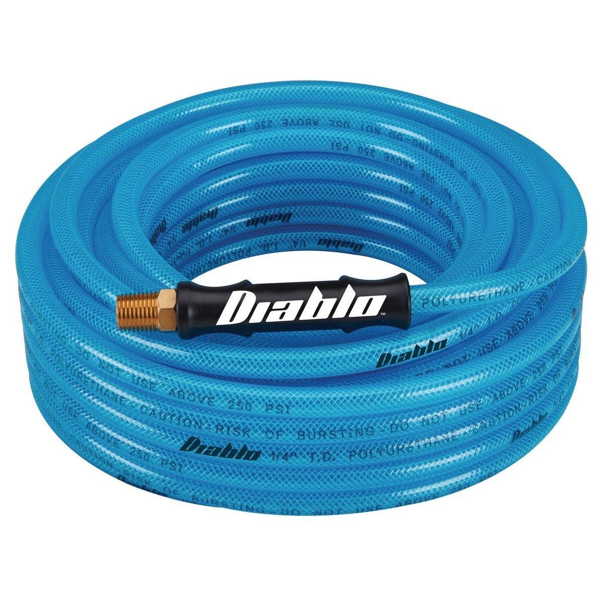 This polyurethane air hose is extremely lightweight, flexible and durable in all work conditions. This non-marring, abrasion resistant hose is 44% lighter than PVC, making it ideal for roofing, flooring and interior work.