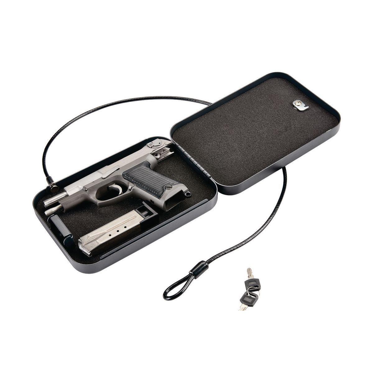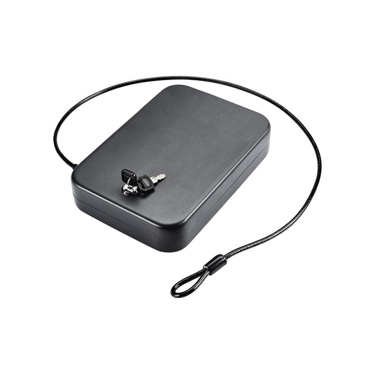 This heavy duty strong box is small enough to pack in your luggage, sturdy enough to prevent forced entry. Keep your wallet, cash, ID, small electronics, or sidearms secure with the strong flexible steel cable. The Personal Portable Security Safe is ideal for hotels and vehicles.