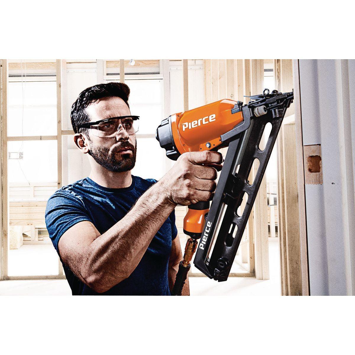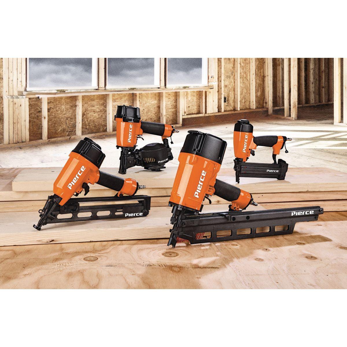 The Pierce 15 GA Finish Nailer delivers superior power - easily driving 2-1/2 in. nails through solid oak. Tool-free depth adjustment makes it easy to work with various dimensions of trim and molding. The easy-to-clear nosepiece has a high-strength latch spring for durability. A switchable trigger gives you the option of single sequential firing or contact firing so that you can change firing operation without hassle. Handles fasteners from 1-1/4 in. to 2-1/2 in. long.