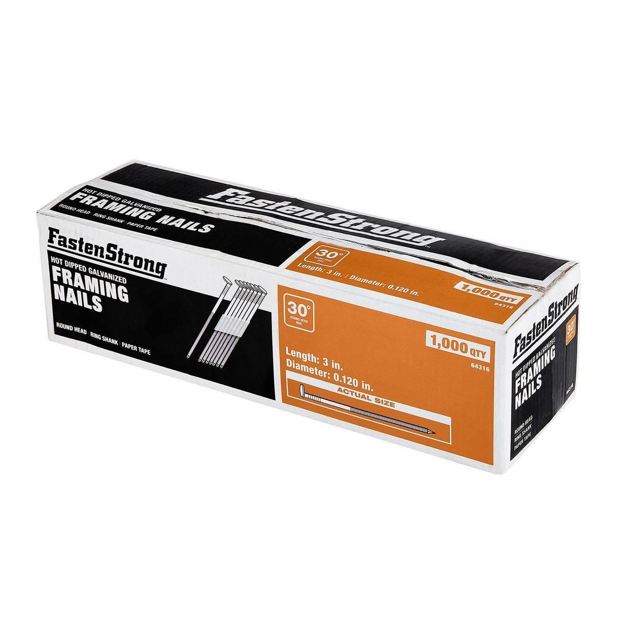 30° 3 in. Galvanized Framing Nails, Ring Shank, 1,000 Pc.