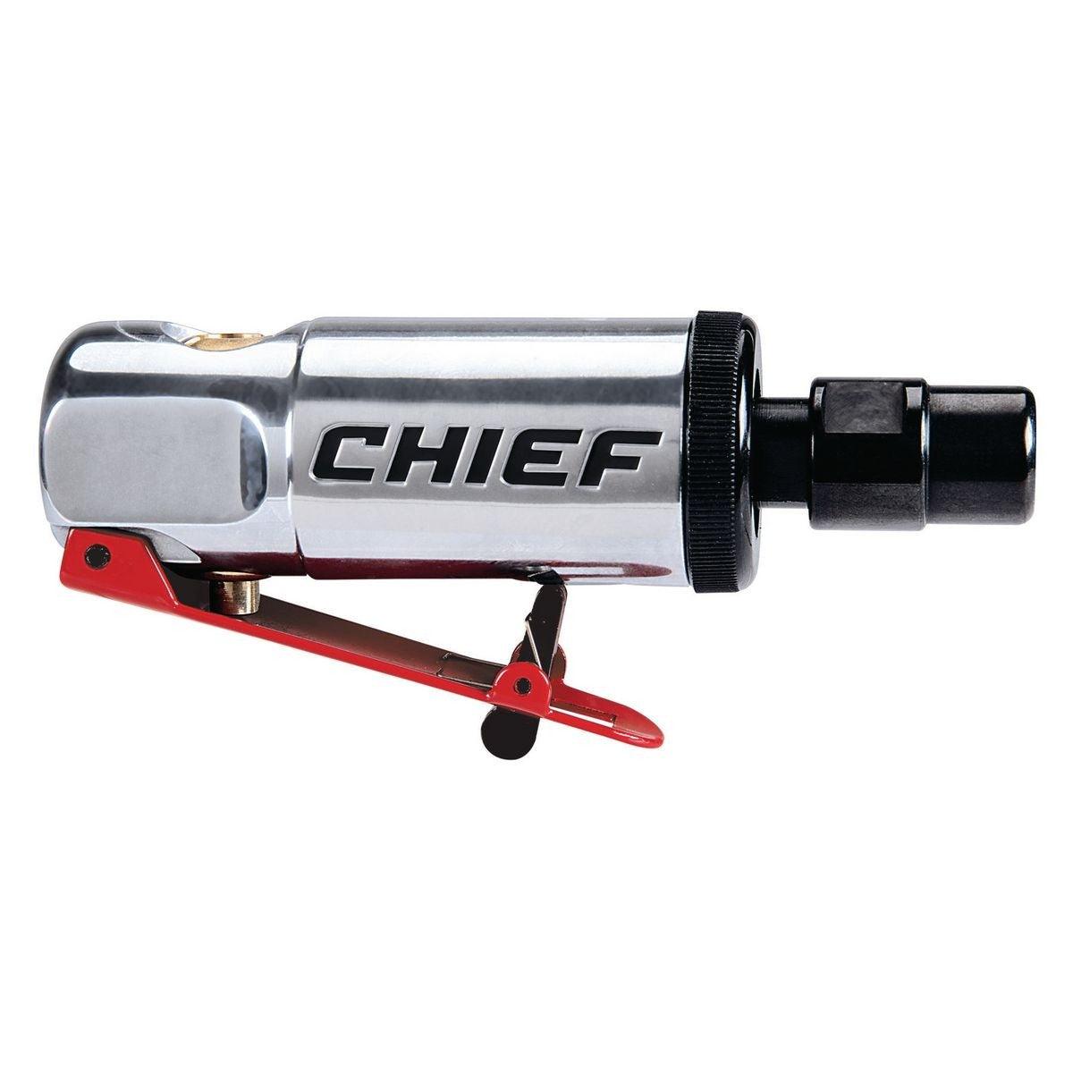 The Chief™ Professional Air Mini Die Grinder is compact and easy to maneuver in tight areas. The adjustable speed regulator makes it easy to work with a wide variety of materials. The paddle-style trigger is designed for easy, precise control.