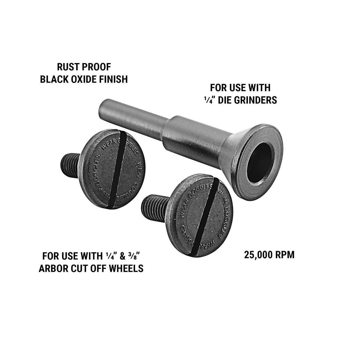 Fits cut-off wheels with 1/4 in, 3/8 in. holes