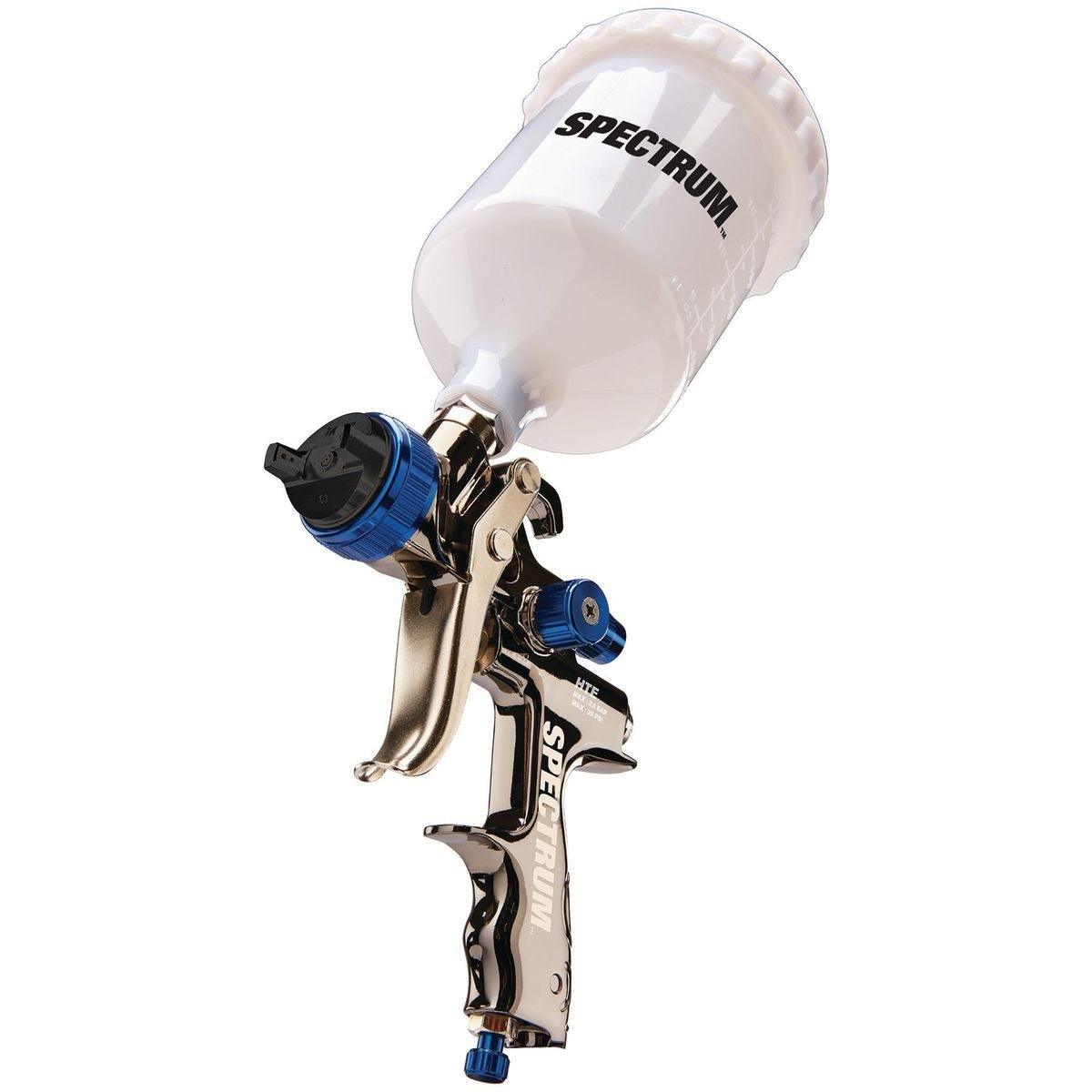 The Spectrum® 20 Oz. Professional HTE Compliant Gravity Feed Air Spray Gun delivers high efficiency performance to lay down a superior coat of paint. Ideal for all kinds of automotive finishes including clear coat, this HTE gun is well balanced and easy to maneuver. The adjustable spray pattern gives you a fan width from 9 in. to 12 in. for excellent coverage.