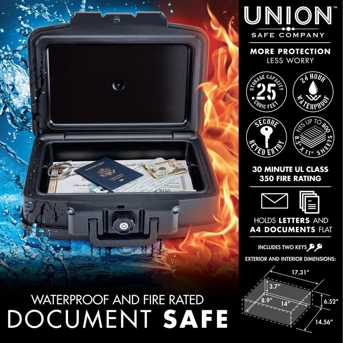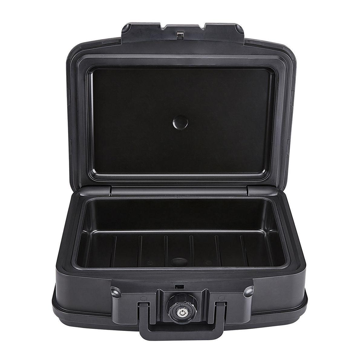Protect valuable letters and documents and keep them secure with this document safe. Featuring a UL class fire rating for up to 30 minutes in 1550° Fahrenheit or 843° Celsius, 24 hour waterproof seal to keep contents dry in up to 38 in. of water and .25 cubic feet of storage space to hold documents and letters flat. This document safe also features a barrel key entry with two keys and carrying handle.