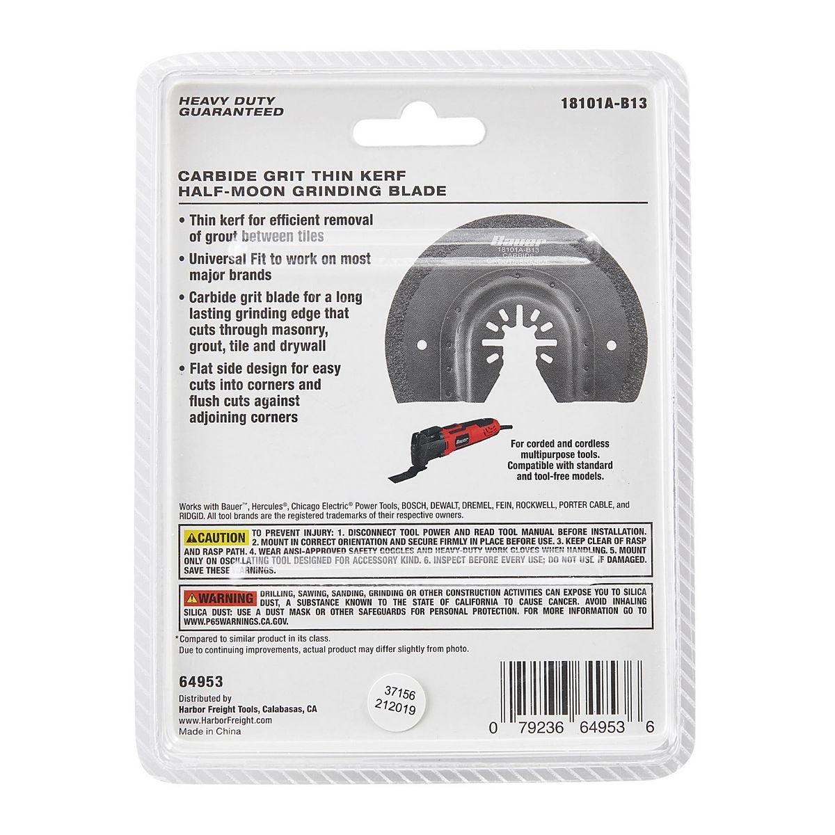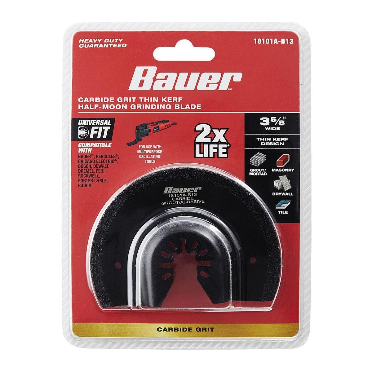 The Bauer™ 3-5/8 in. Carbide Grit Half Moon Grinding Blade uses sharp carbide grains to grind, shape and cut masonry, grout, tile and drywall. The carbide grit lasts up to 2x longer than similar products in its class. The blade is offset for easy flush cutting and corner work.