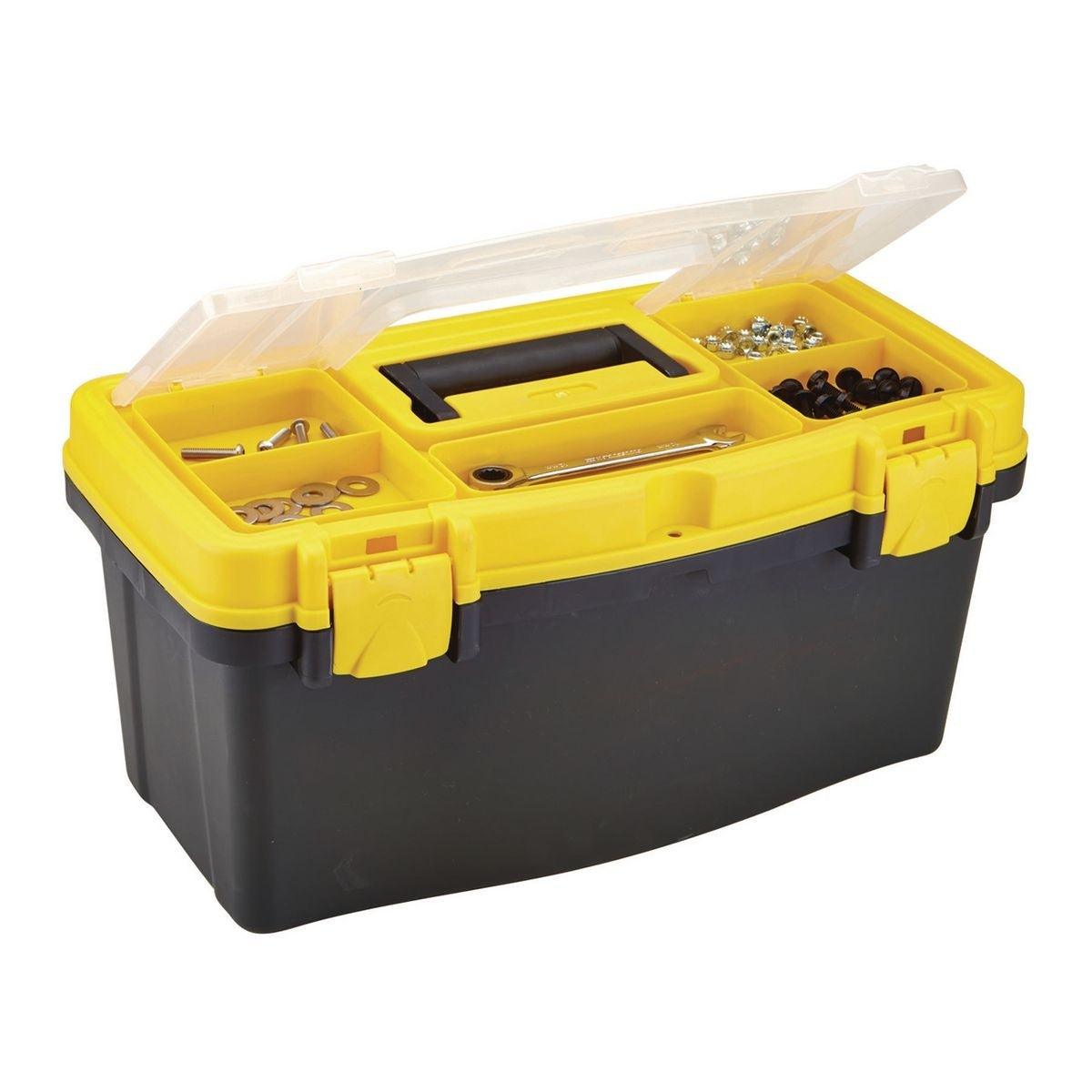 This toolbox features heavy duty, weather-resistant construction with a smooth finish. Clear lids allow you to view the contents of your toolbox without opening it - great for use with fasteners, fishing tackle, and craft supplies.