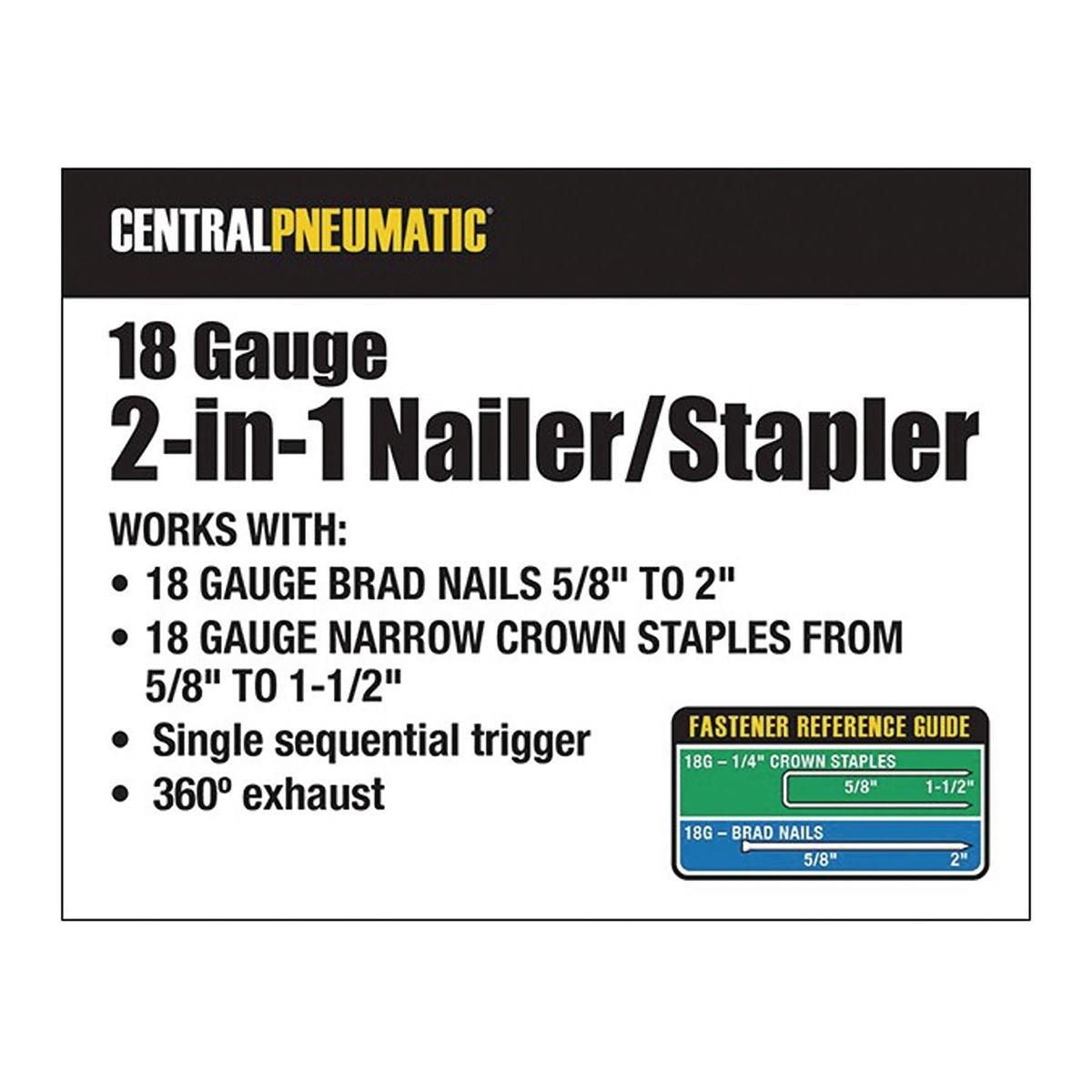 Central Pneumatic 68019 18 Gauge 2-in-1 Air Nailer/Stapler