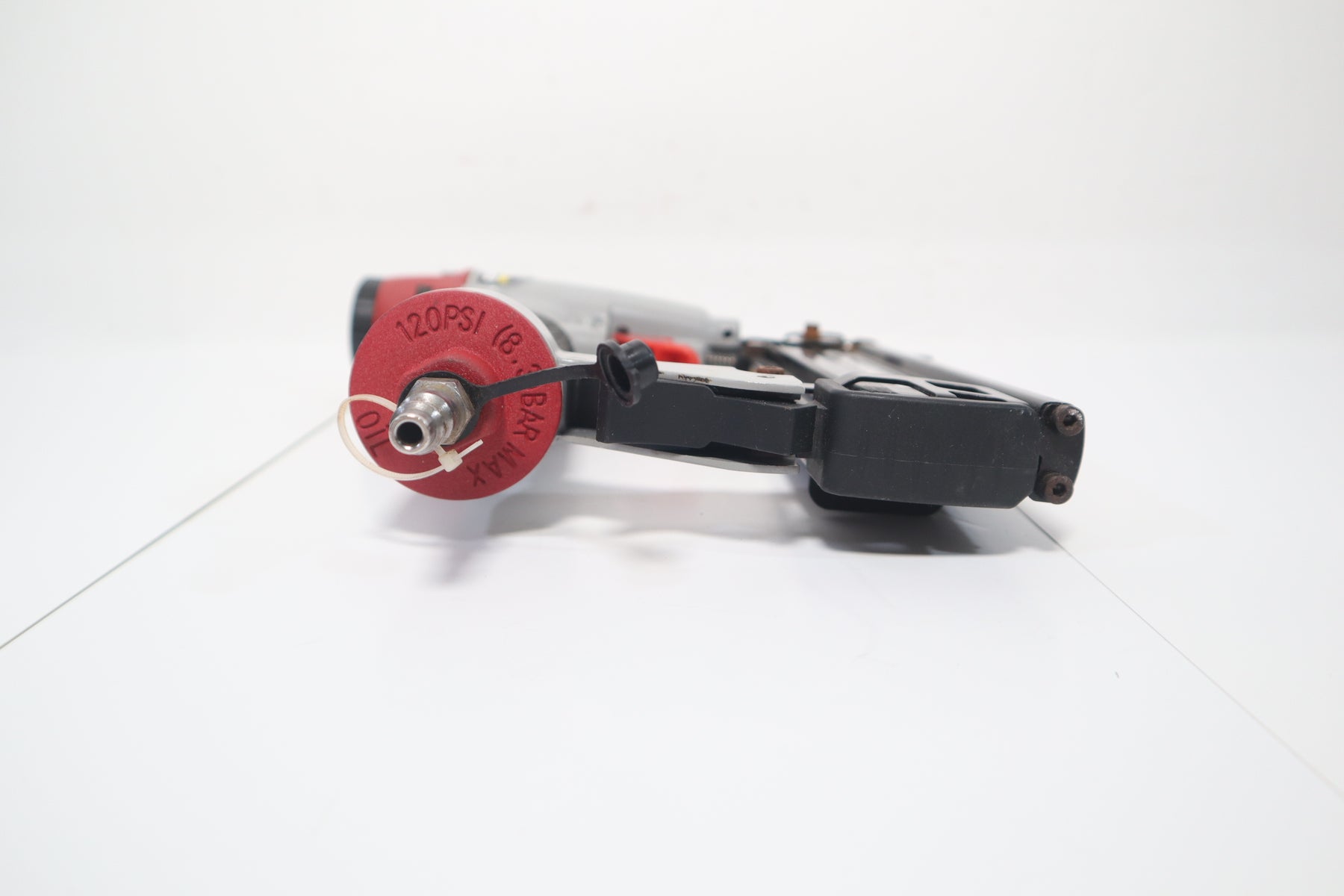 A: Maximum working pressure is 120 PSI (8.3 BAR). Use with a regulated air compressor.